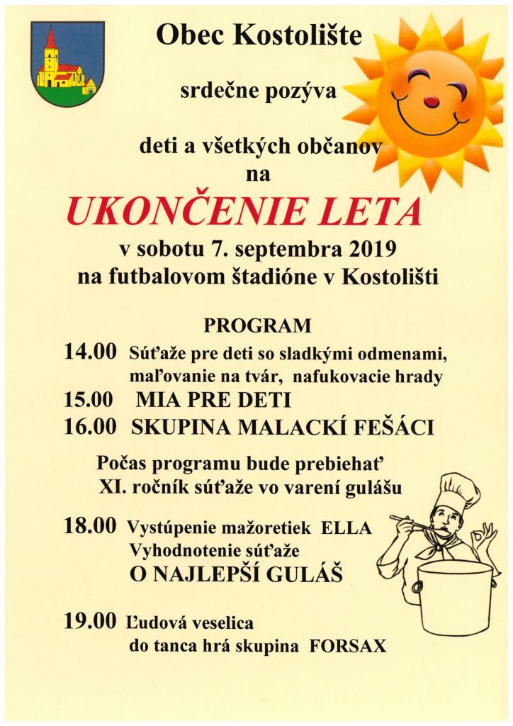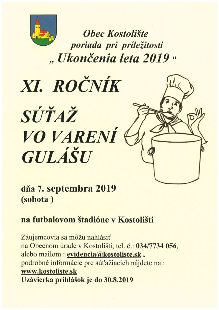 SRDEČNE VŠETKÝCH POZÝVAME NA TRADIČNÉ UKONČENIE LETA 2019 SPOJENÉ S XI. ROČNÍKOM SÚŤAŽE VO VARENÍ GULÁŠU