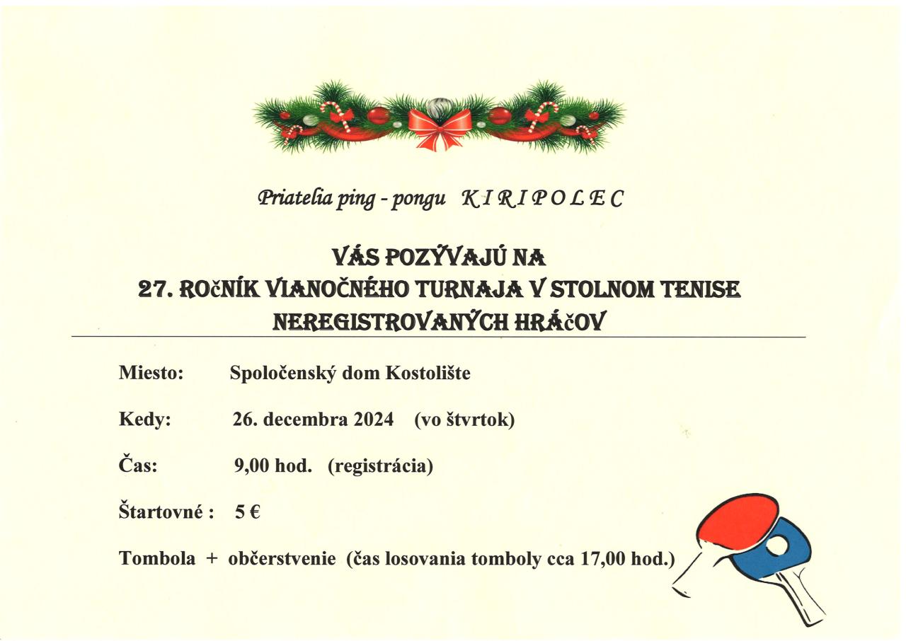 27. ročník turnaja v stolnom tenise pre neregistrovaných hráčov a amatérov.